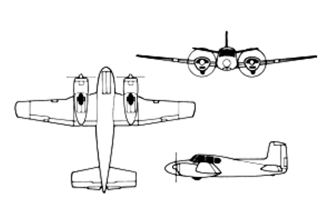 Light twin-engined utility aircraft. In service since 1950. J50 more powerful development for higher speed, higher service ceiling and extended range. Again more powerful development Excalibur by SWEARINGEN, USA. Mil. type: U-8 Seminole. J50: MTOW 3,310kg. Excalibur: MTOW 3,450kg.