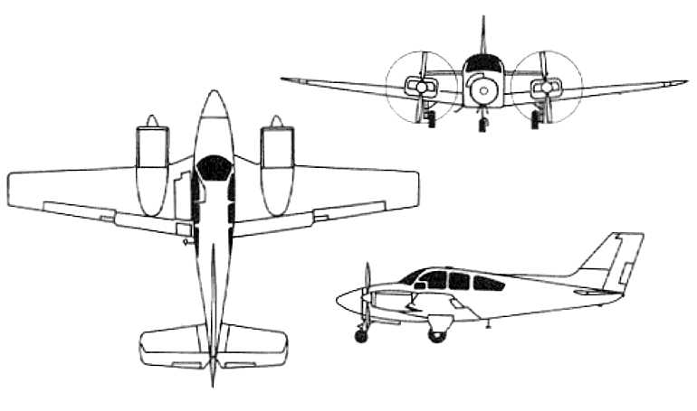 2 x 260 HP Continental IO-470-L piston engine with two blade propellers.
