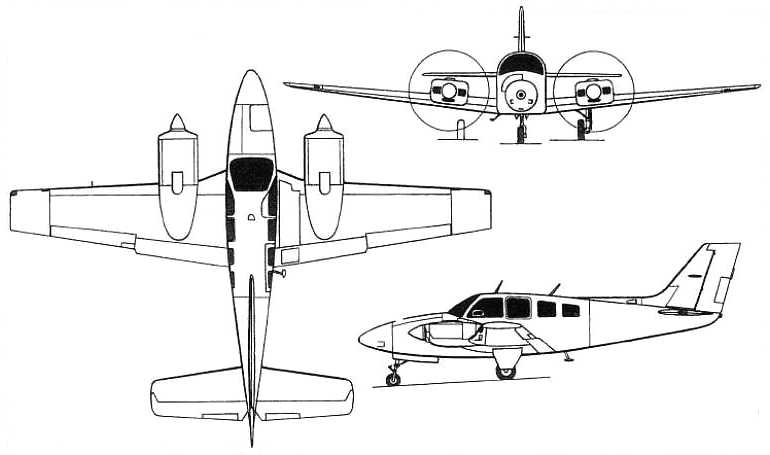 2 x 300 HP Continental IO 550-C piston engines or 2 x 325 HP Continental TSIO 520-W3 turbocharged piston engines with 3 blade propellers.