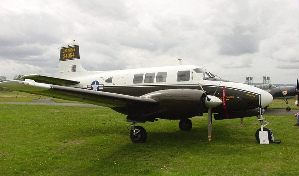 Utility, light transport and commuter airliner. In service since 1960. Initial model of BEECH largest piston engine utility aircraft family. Combined the wing of the BEECH 50 Twin Bonanza with a new fuselage. Replaced by BEECH 80 in 1964. Mil. Type: U-8F Seminole.