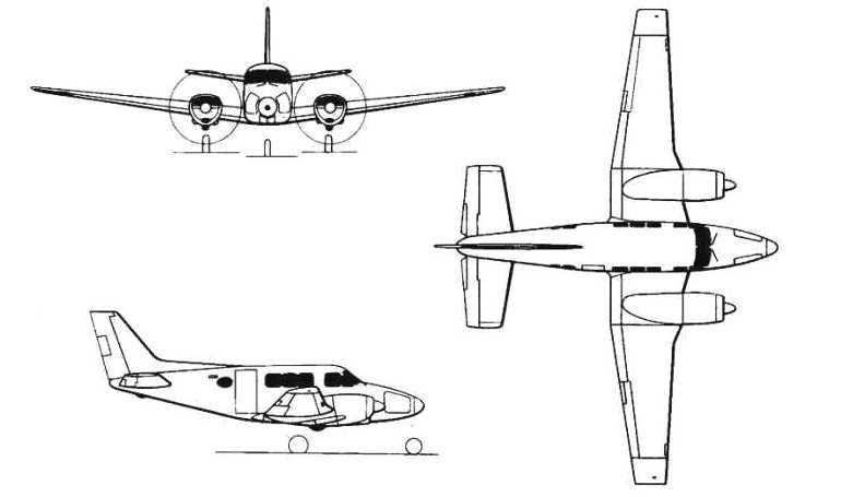 2 x 340 HP Lycoming IGSO-480-A1E6 piston engines with three blade propellers.