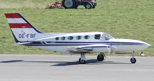 Utility twin aircraft. In service since 1969. Less powerful, light and low cost model of CESSNA 421 Golden Eagle. Features wing of CESSNA 402 and fuselage of CESSNA 421. Improved version CESSNA 414A Chancellor (appeared in 1978) with bonded wet wing, without tip tanks. Remained in production until 1985.