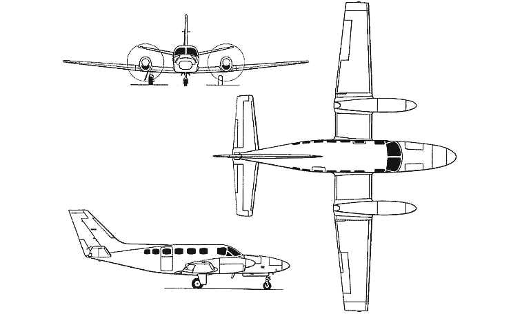 Executive transport aircraft. In service since 1977. Turbo-prop powered equivalent to CESSNA 404 Titan with bonded wet wings and pressurized fuselage. Cessna renamed the Conquest to Conquest 2 in 1986. Hybrid version F406 Caravan 2, with unpressurized fuselage of 404 Titan and wings of 441 Conquest 2, built by REIMS, France.