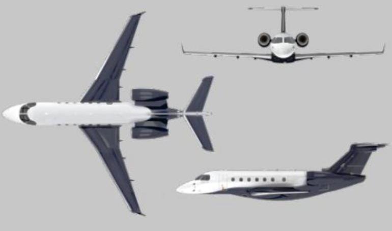 Medium-sized business jet. First flight in 2012, certified in 2014. A shorter version of the E545 that accommodates up to 12 passengers.