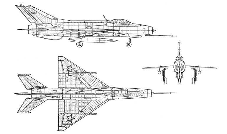 Single seat fighter and close support aircraft. In service since 1955 (J-7 since 1967, MiG-21 bis since 1972). Lightweight interceptor development, built in many versions: