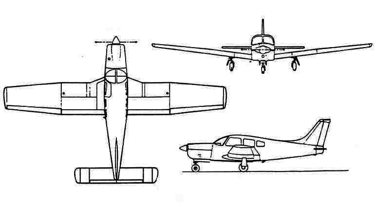 Light aircraft. In service since 1976. Retractable gear development of PA-28-180 Cherokee. Replaced by the stretched more powerful PA-28R-200 Arrow 2 and in 1975 by PA-28R-201 Arrow 3. Production ceased in 1982 and restarted in 1990 with Arrow 3. Licence production by AICSA, Columbia, and CHINCUL, Argentinia, also by EMBRAER and NAIWA, Brazil, as EMB-711B/C Carisco. PA-28R-200: Length 8,3 m.