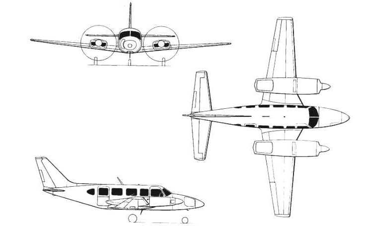 Corporate twin and commuter aircraft. In service since 1965 (Chieftain since 1973). Commuter and airliner development. Basic for a large series of developments that led to Cheyenne 400LS. PA-31-350 Chieftain improved, stretched version for 9 passengers with more powerful counter rotating engines. Production of the Navajo ceased in 1983 (1800 aircraft built) and of the Chieftain in 1984 (1825 aircraft built). Pressurized versions PA-31P Pressurized Navajo and PA-31P-350 Mojave. The PA-31-310 Navajo has 3 square and one rounded cabin window, the PA-31-350 has 4 square cabin windows. Chieftain: Length 10,6 m MTOW 3,200kg.