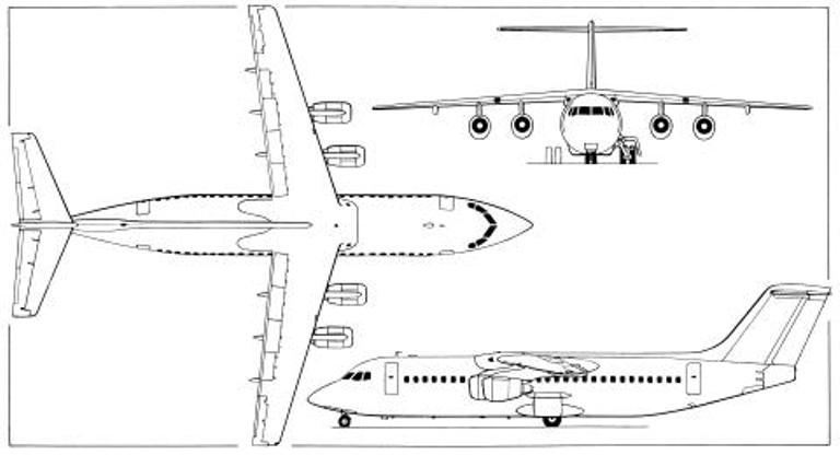 Short range regional airliner. In service since 1988. Member of AVRO/AI(R) RJ family updated and re-engined types of BAe-146-300. Stretched development of BAe-146-200 / RJ85. Avroliner 100 signifies for 100 passengers. Total of 71 aircraft were built.
