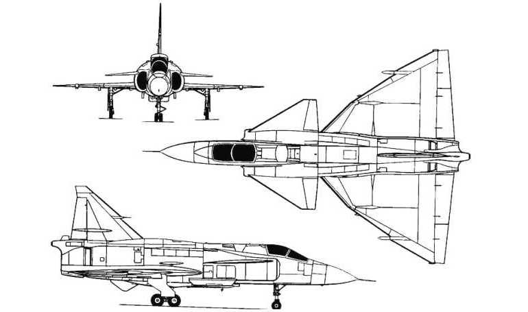 Multi-role fighter. In service since 1971. Exists in versions for intercept, attack and reconnaissance and two-seater as ECM trainer. Only used by Royal Swedish Air Force, specially designed for short landings. Max speed: Mach 2.1