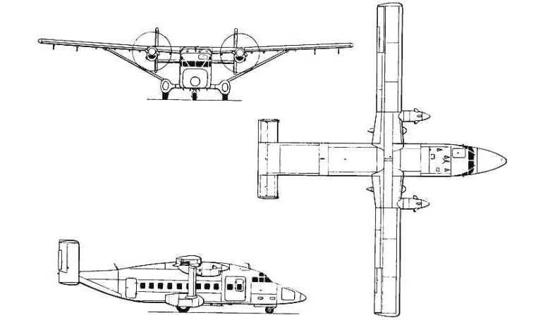 Regional airliner and utility freighter. In service since 1975. Improved, stretched development of SC-7 Skyvan. More powerful development 330-200. Various freighter versions were built including the Sherpa with a rear loading ramp. Military version C-23 for US Air Force and Army and 330-UT for Thailands Army.