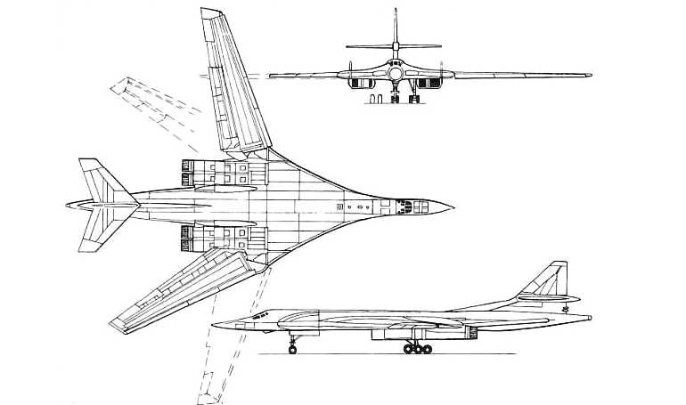 The Tupolev Tu-160 (NATO reporting name: Blackjack) is a supersonic, variable-geometry heavy bomber designed by the Soviet Union. It is similar in appearance to the American B-1 Lancer but is an entirely different class of aircraft, being a stand-off missile platform. The Tu-160 is also significantly larger and faster than the B-1B and has a greater combat range. It is also the largest variable-sweep combat aircraft ever built.