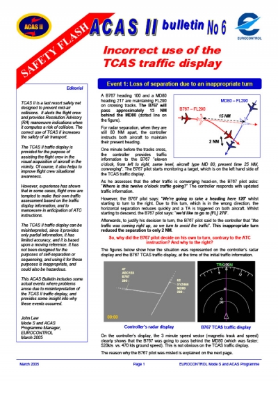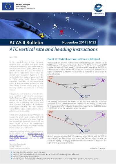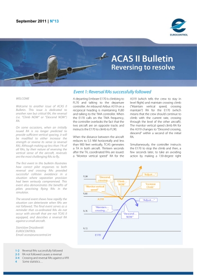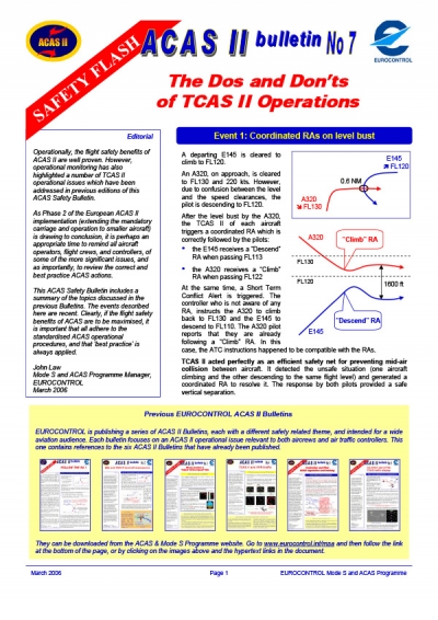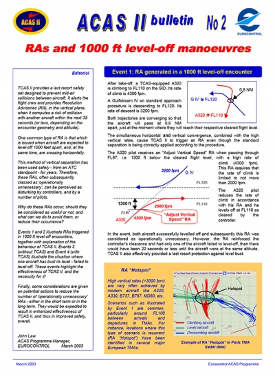 A series of ACAS II Bulletins has been published by EUROCONTROL since 2002, each focusing on a different operational theme of interest to both aircrews and air traffic controllers.