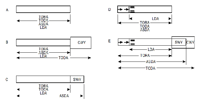 Calculation of declared distances. Source: Annex 14, Volume I - Aerodrome Design and Operations (Figure A-1)