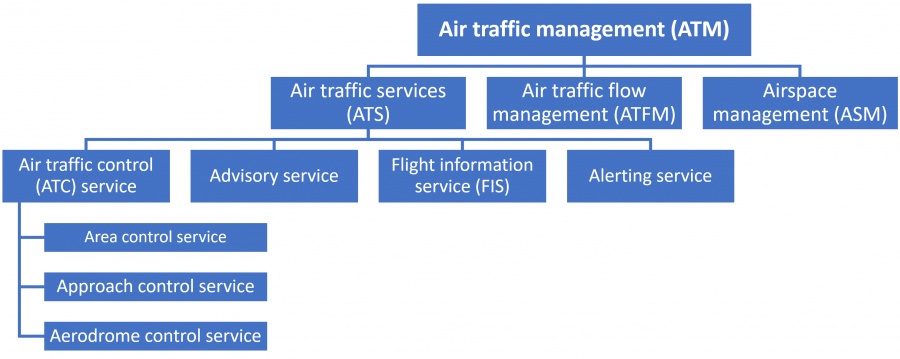 The diagram below shows the structure of ATM and explains the relations between ATM, ATS and ATC.