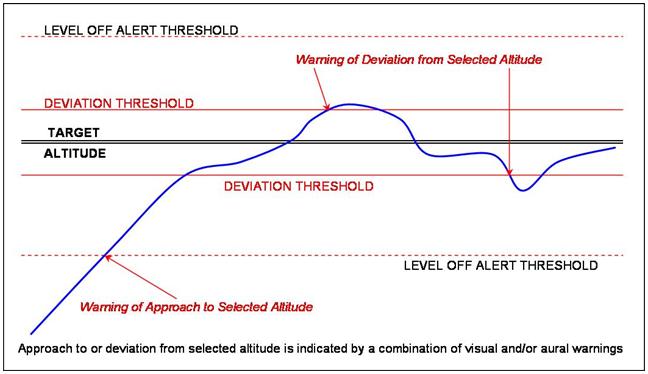 (2) alerting the flight crew by at least an aural signal, when deviating from a preselected altitude.