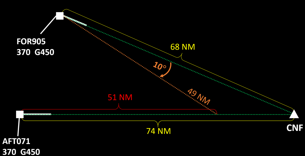 For some reason the controller believes that AFT071 will reach the fix CNF before FOR905 does and based on this assumption vectors FOR905 to get it behind AFT071. Note that the vecror itself was correct except for the fact that it was issued to the wrong aircraft.