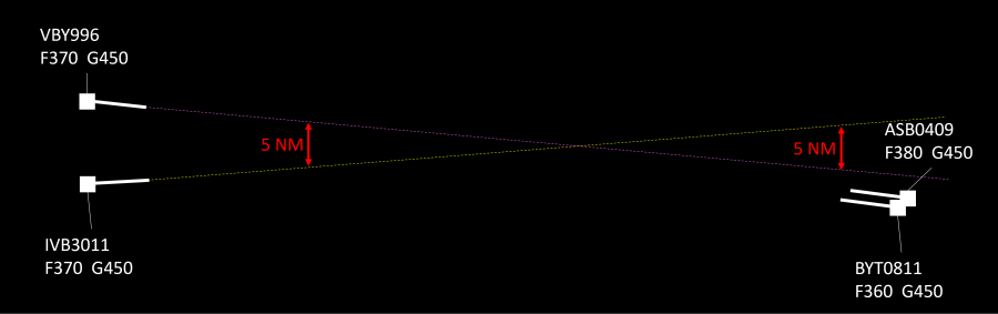 - Faster to achieve. Even when the aircraft is to climb or descend by 2000 ft, only 1000 are often enough to ensure separation with the conflicting aircraft (see section Opposite Levels for details). This means that the conflict is usually solved within less than a minute.