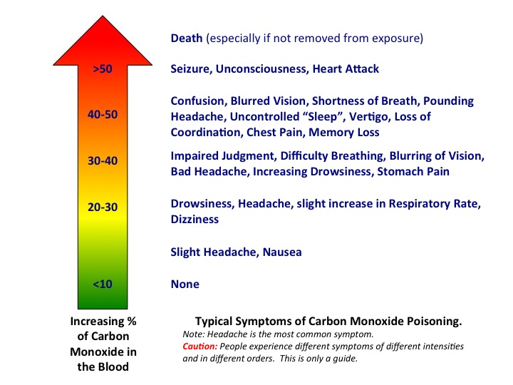 It is important for everyone to be aware of the symptoms of CO poisoning; these are summarised in the following Table.