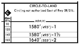 | Circling IAS | 100 kts | 135 kts | 180 kts | 205 kts | 240 kts |