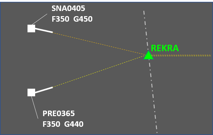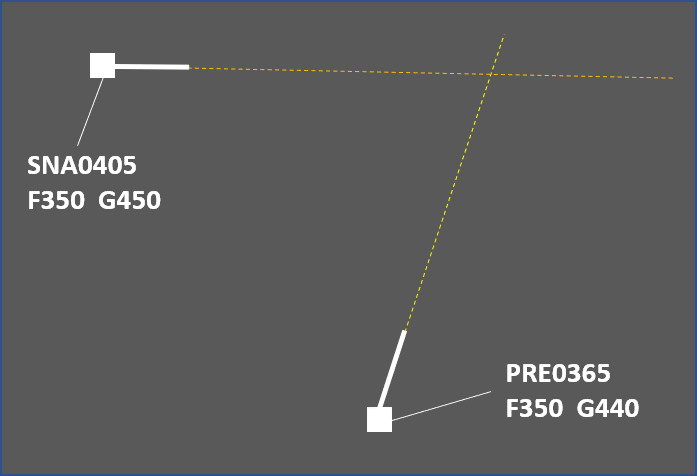 - Crossing conflict - the two aircraft's paths cross at some point and diverge afterwards.