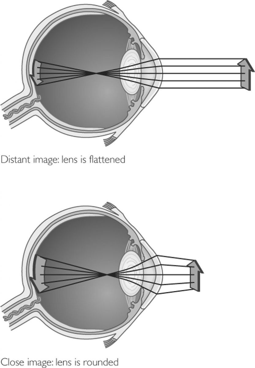 The normal function of the eye lens is to physically focus light from the object on the retina. To do this, the eye must be stimulated by an image. Empty field myopia manifests itself when the human eye is in a passive state of focal point adjustment, i.e. when there is no image (stimulus) for the eye to focus on, for example, when the eye is either in complete darkness, or looking at a bright empty field. If the eye lacks this stimulation, the lens is shifting to a resting state.