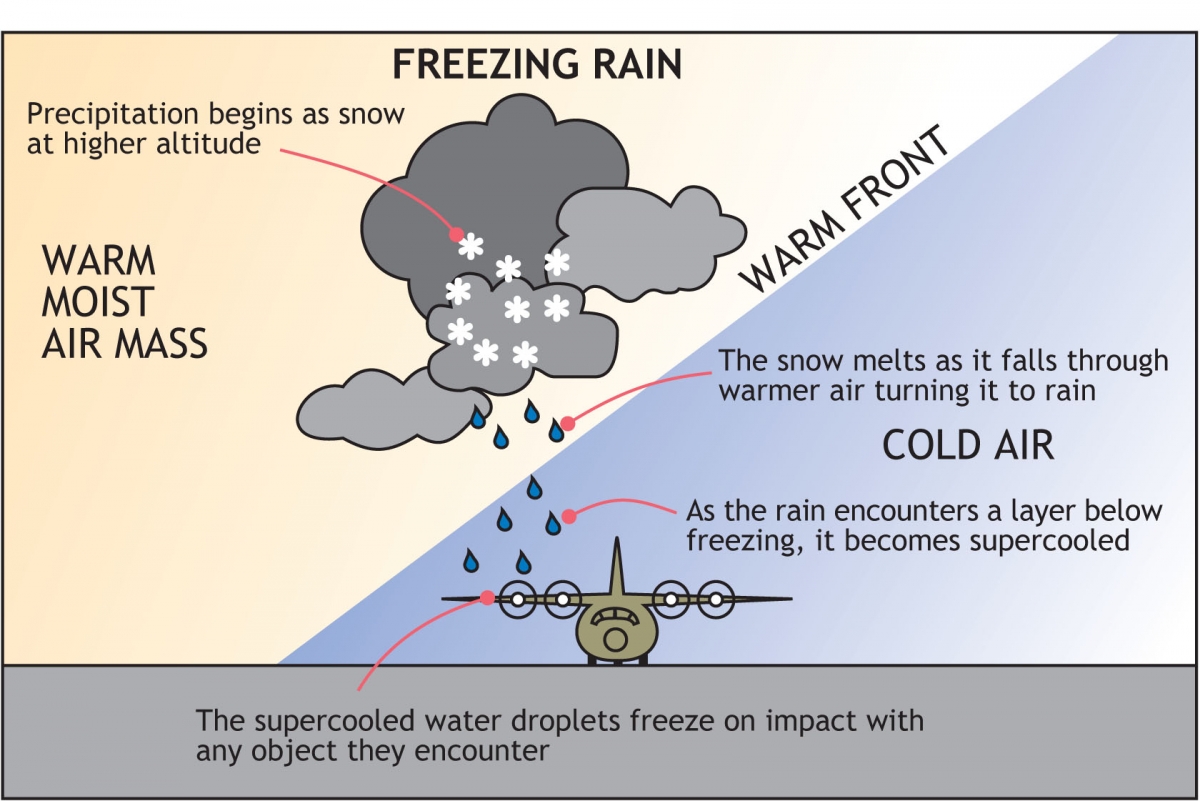 - In Flight. The best response is avoidance: aircraft should be routed away from forecast/reported freezing rain horizontally and/or vertically. When in the vicinity of a warm front in winter, if performance, ATC, and regulations allow, consider flying above the freezing level, where the ice crystal precipitation will not have a chance to melt.