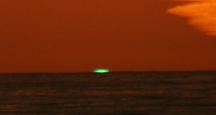 Inferior-mirage Green Flash. Image taken by Brocken Inaglory, Santa Cruz, California, January 2006. Source: wiki commons.