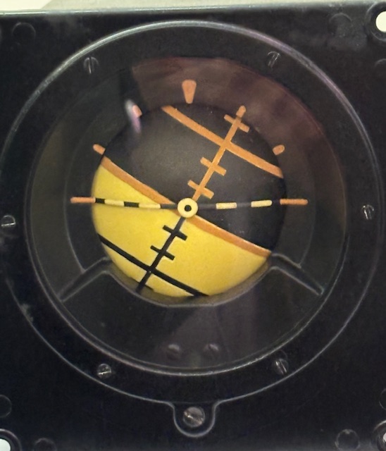 Sperry attitude indicator, 1945. SkyBrary photo by Thomas Young taken at the U.S. National Air and Space Museum's Steven F. Udvar-Hazy Center.