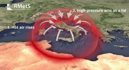 Simple animation of the heating process within a heat dome [by kind permission of the Royal Metoerological Society]