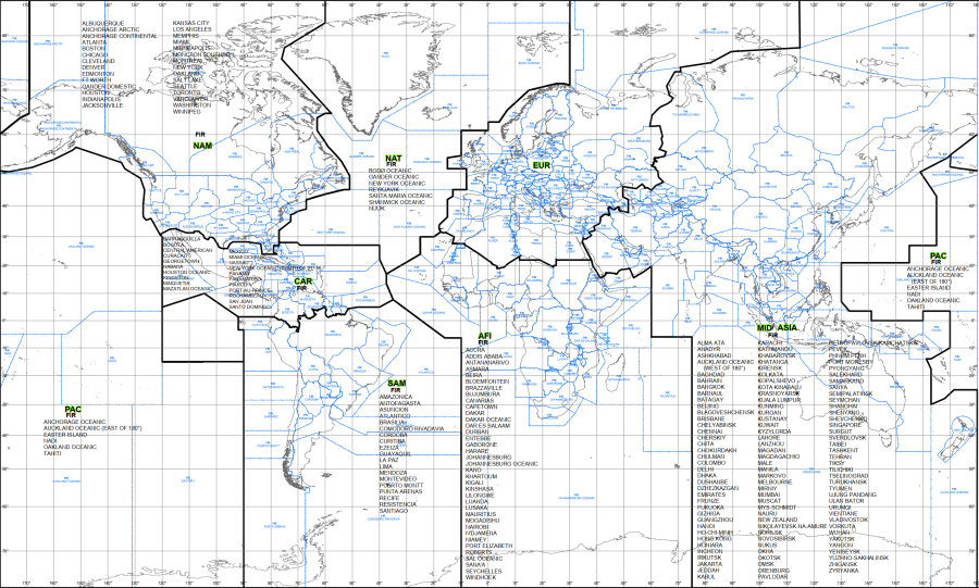 A map of ICAO Regions and corresponding FIRs: