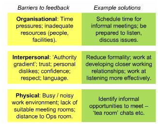 As with many aspects of organisational functioning, there is a distinction between policy - what should happen, and practice - what actually occurs. Often, these processes of upward communication and feedback are ineffective. There are many possible reasons for this. They include what might be called ‘barriers’ to effective communication. (See Figure 1)