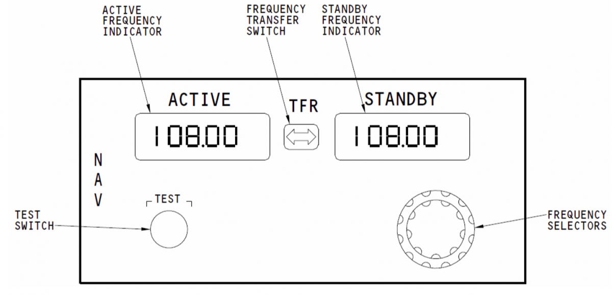 Manufacturers have increasingly equipped avionics and other systems with concentrically centered controls to conserve limited space in the instrument and control panels of aircraft. These are typically designed so that the larger outer knob closest to the face of the panel changes cursor position, selects information category, operating/display mode, or large value changes. The smaller inner knob is used to select among the information content, sub categories of the position selected with the larger outer knob, or fine value changes. The most familiar implementation of concentrically-centered control is probably in navigation and communication tuning heads (e.g., to set the frequency in the standby frequency indicator, turn the frequency selectors to set the frequency). The first digit is always 1. The outer knob sets the second two digits (10 MHz and 1MHz) in 1 MHz increments. The inner knob sets the fourth, fifth, and sixth digits (100 kHz, 10 kHz, and 1 kHz) in 25 kHz increments.