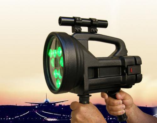 The light gun is a relatively large (but still handheld) projector which is aimed at the aircraft. The controller uses a trigger to transmit either a series of pulses or a continuous stream of light and may choose the colour of the beam (red, green or white).