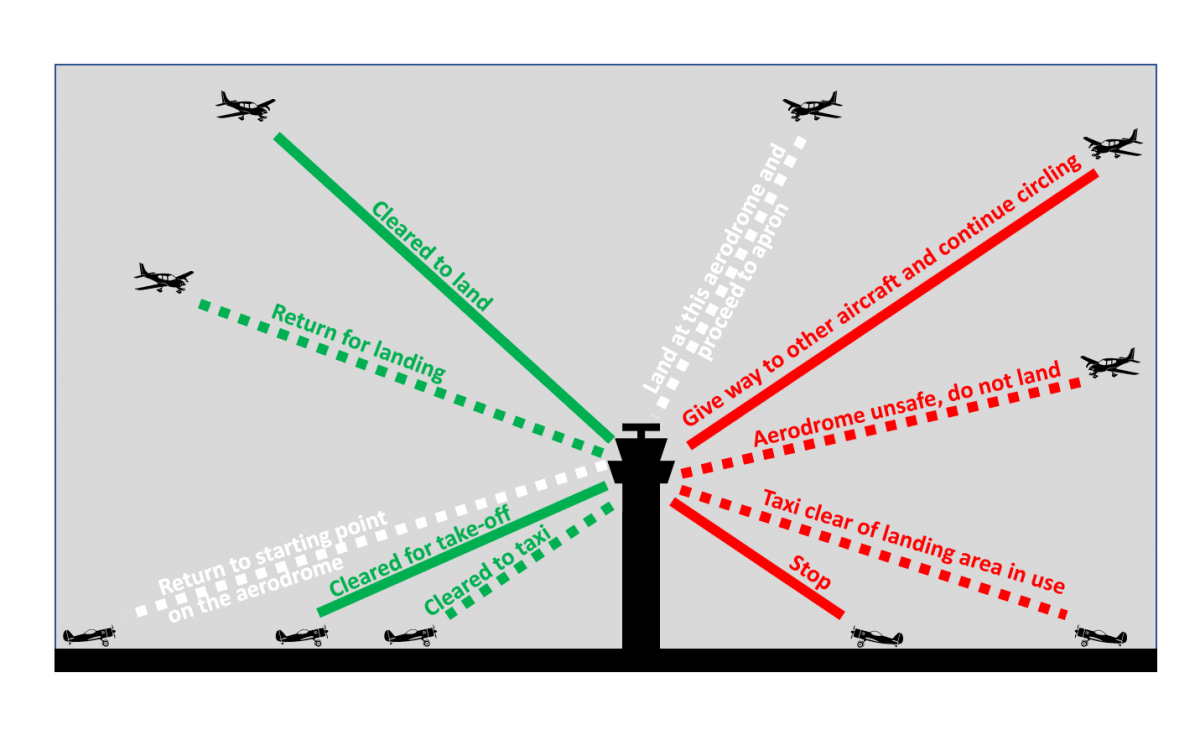 | Steady green | Cleared to land | Cleared for take-off |