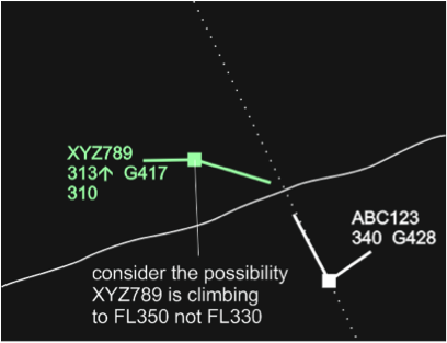- Ensure increased separation in “suspicious” situations (e.g. if an aircraft appears to climb higher than the previously coordinated level). See the picture below;