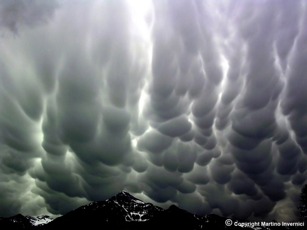 Lobes or pouches of cloud which hang down from the base of a cloud. The name comes from the latin mamma which means breast.