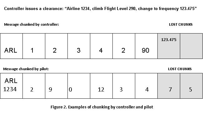 The way in which the information contained in a message is chunked depends on the person receiving the message: a pilot and ATCO are likely to chunk a message in rather different ways. This is due to the familiarity of each person and their professional experiences. It is also associated with the position of the person, either as the sender or the receiver. Figure 2 gives examples of how this might occur: