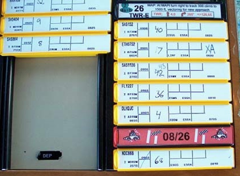 • “RUNWAY OCCUPIED” strip. This may be placed in a dedicated Strip holder of a different colour, usually red, to make it more noticeable. An example of this memory aid is shown in the picture below.