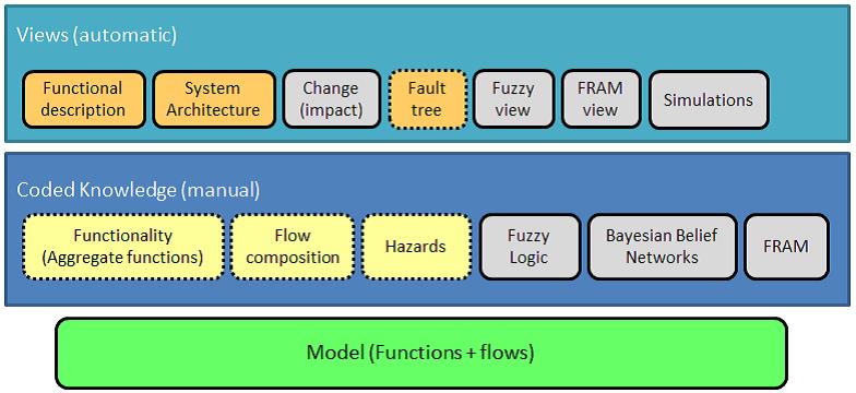 The current version is static, lacking information on dynamic properties of the system. Functional Resonance Analysis Method (FRAM) is proposed to model complex socio-technical systems and is based on SADT adding two new “sides” to the function description, namely time and preconditions. These two new properties describe dynamics and thus adding these new features to the functions is a way to integrate dynamics in the existing model. The main difficulty will be to obtain this information for the existing system. Adding it in the current knowledge database will be straightforward. Variability is another FRAM characteristic associated with the system dynamics, used to explain why functions can become coupled and how this leads to unexpected outcomes. It is a function property relevant for the outputs and studies are needed to find the best way to add this knowledge to the model.