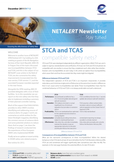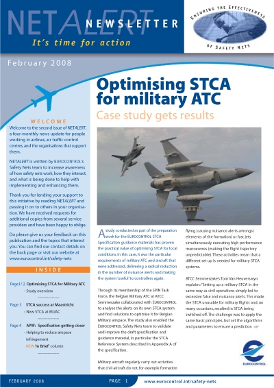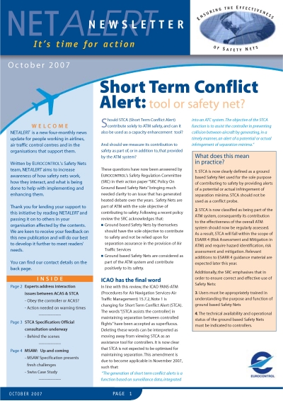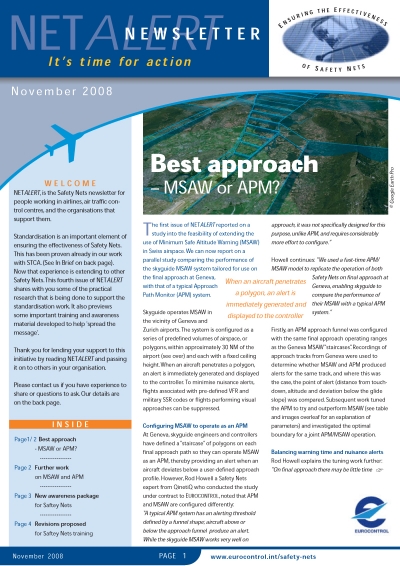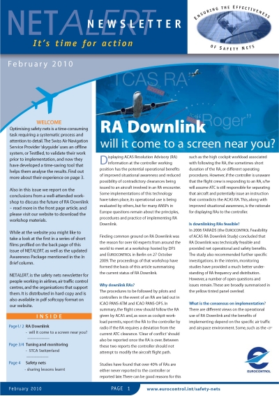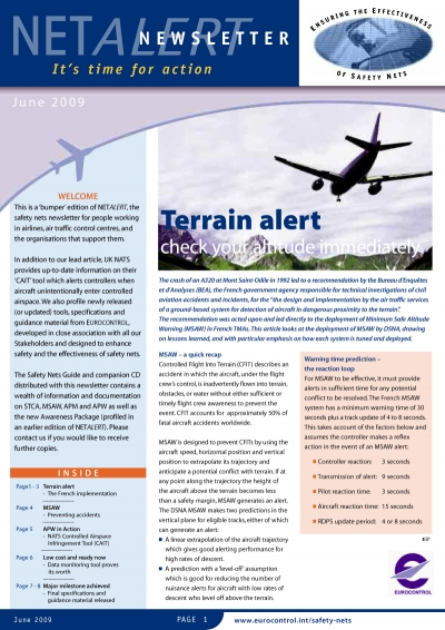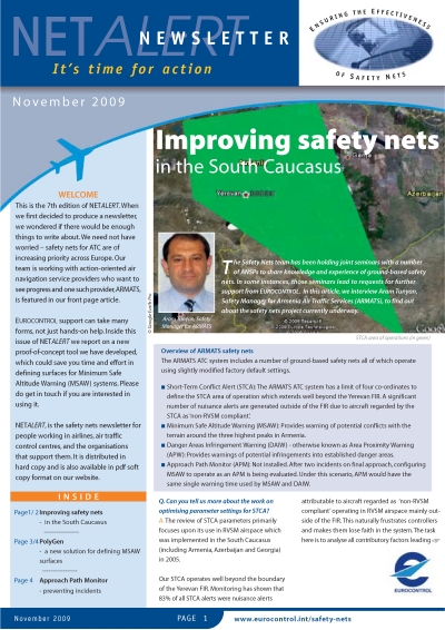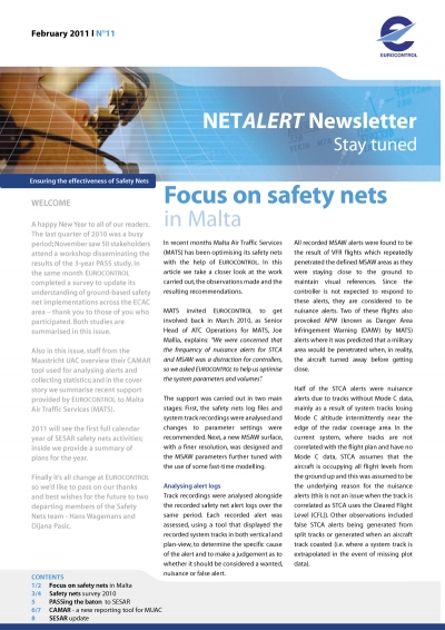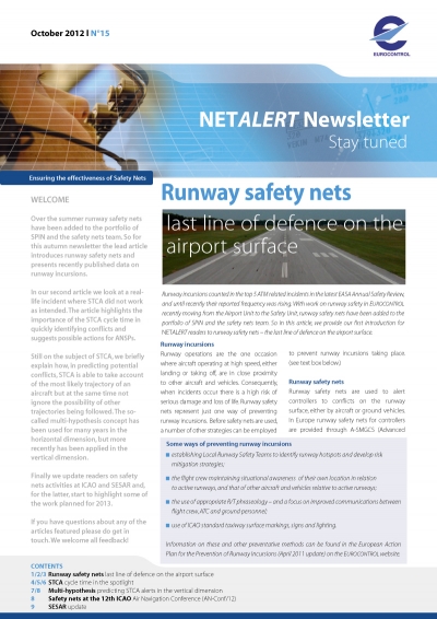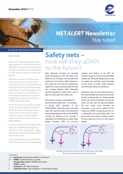 Written by EUROCONTROL's Safety Nets team, NetAlert aims to increase awareness of how safety nets work, how they interact, and what is being done to help with implementing and enhancing them.