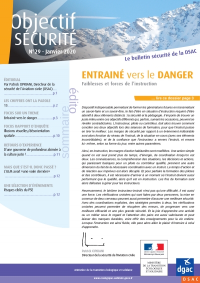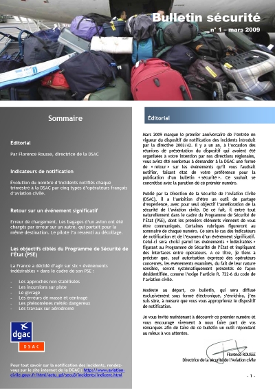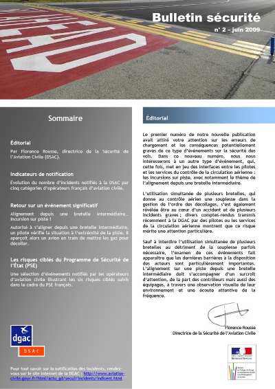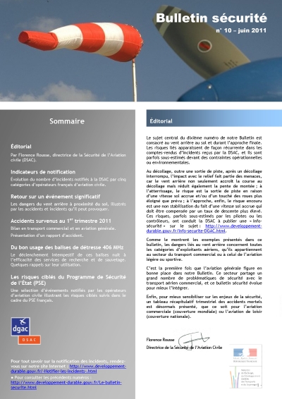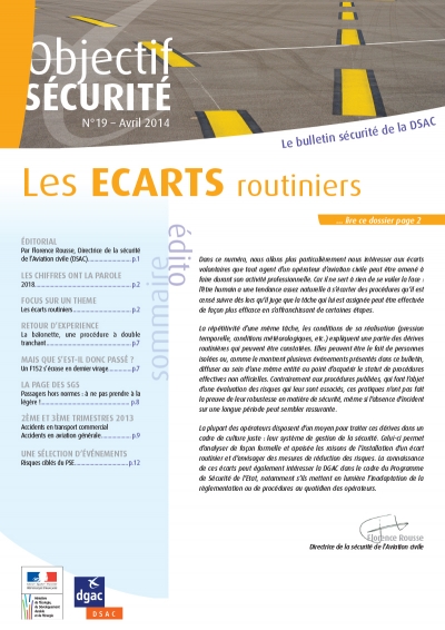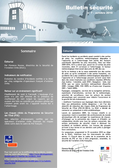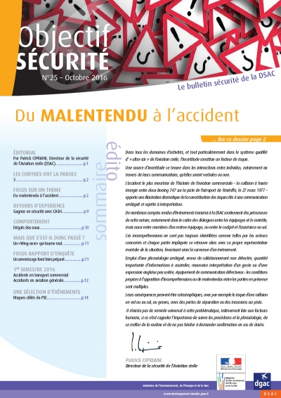 Objectif SECURITE is a safety bulletin published by DSAC, the Civil Aviation Safety Directorate of the French DGAC. It is one of the safety promotion tools implemented in the framework of the State Safety Programme (SSP) of France.