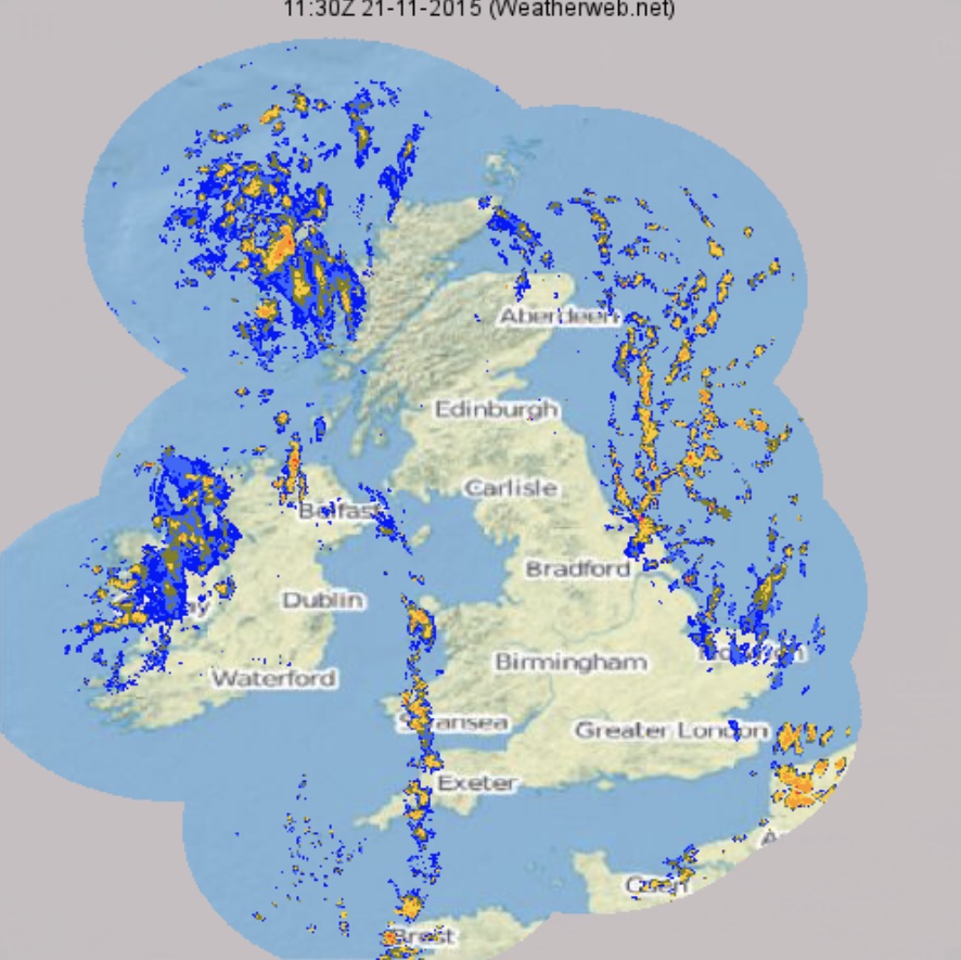 Radar image showing Dangler positioned a little further east than usual on 15th November 2015 [ Source weatherweb.net]