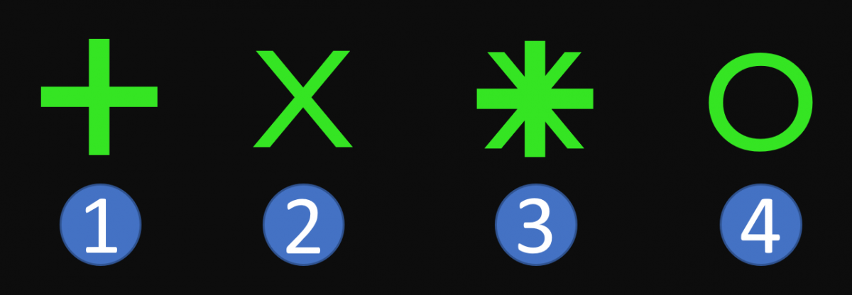 Examples of different track symbols: 1 - primary, 2 - secondary, 3 - combined, 4 - ADS-B. Note that these are not intended to represent any real life system.