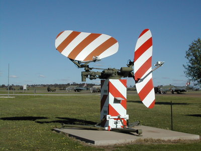 Example of PAR antennas. The horizontal one sweeps left and righr and provides distance and azimuth. The vertical antenna sweeps up and down and determines the height using the elevation angle of the antenna and the distance of the target
