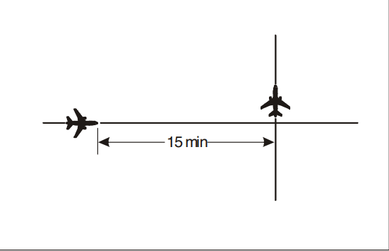 - Two aircraft are maintaining the same level. Their position estimates over the same waypoint are compared, and if the time difference is less than the prescribed minimum, action must be taken by the controller, for example: