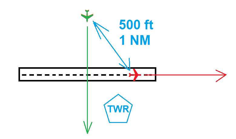 Aircraft A is taking off, aircraft B is cleared to cross above the runway. The tower controller observes both aircraft and is therefore able to apply separation that is significantly lower than e.g. surveillance separation which is 3 NM or 1000 ft if provided by an approach control unit