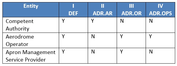 Figure 2: Matrix highlighting the applicability of EASA ADR’s annexes