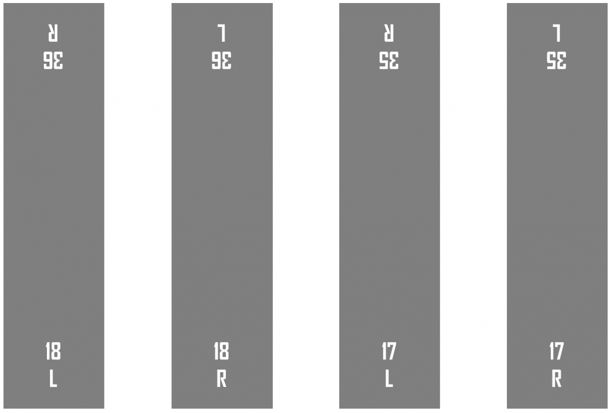 - for five parallel runways: “L” “C” “R” “L” “R” or “L” “R” “L” “C” “R”;