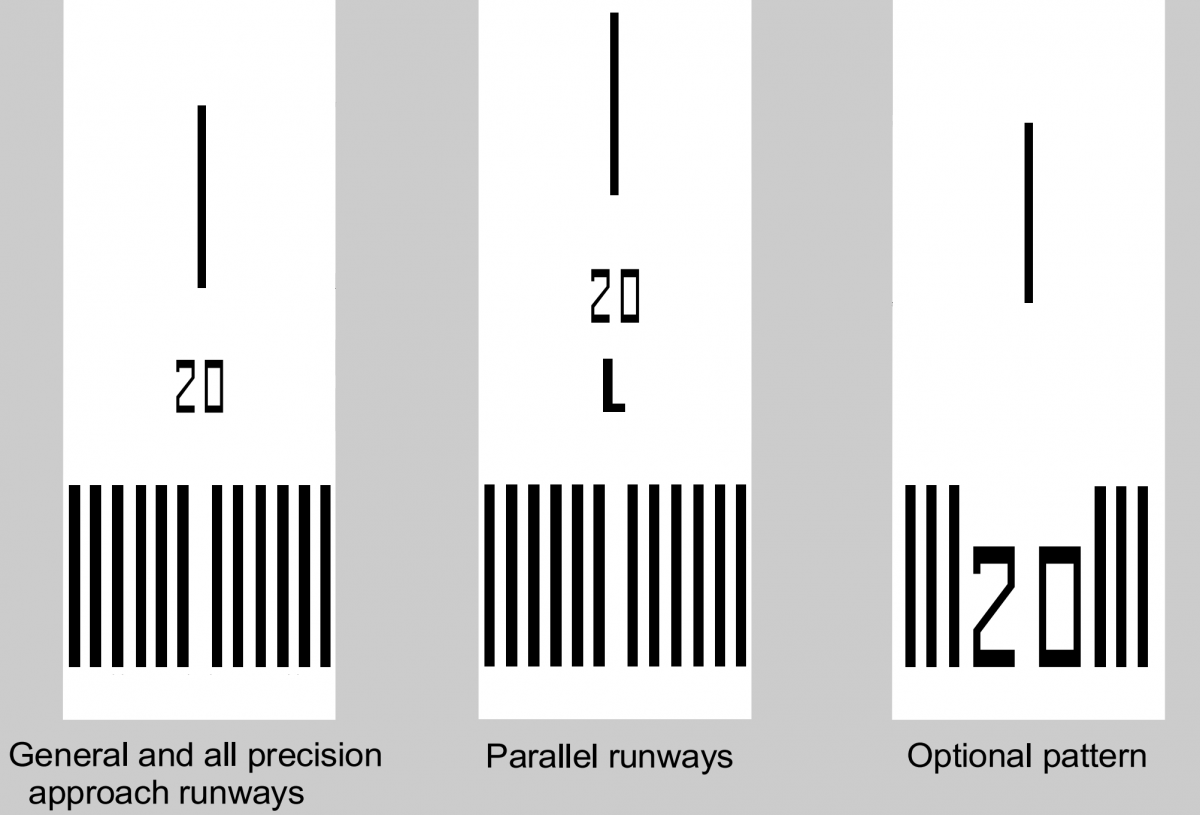 For parallel runways, the letter (L, R or C) is placed after the threshold marking and the number (e.g. 11) is placed after the letter.