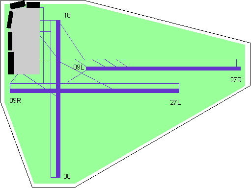The airport has three runways, the two parallel runways 09R/27L and 09L/27R, plus the crossing runway 18/36, only used in extreme crosswind situations (Figure 1).